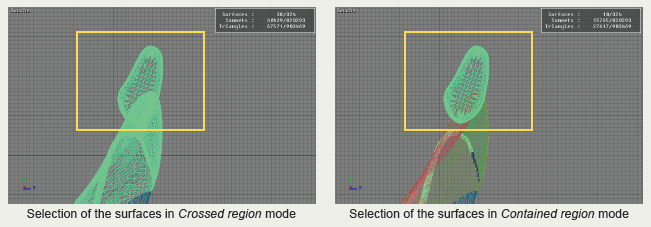 operating mode (F2) allows you to interact directly with the 3D surfaces to modify the selection.