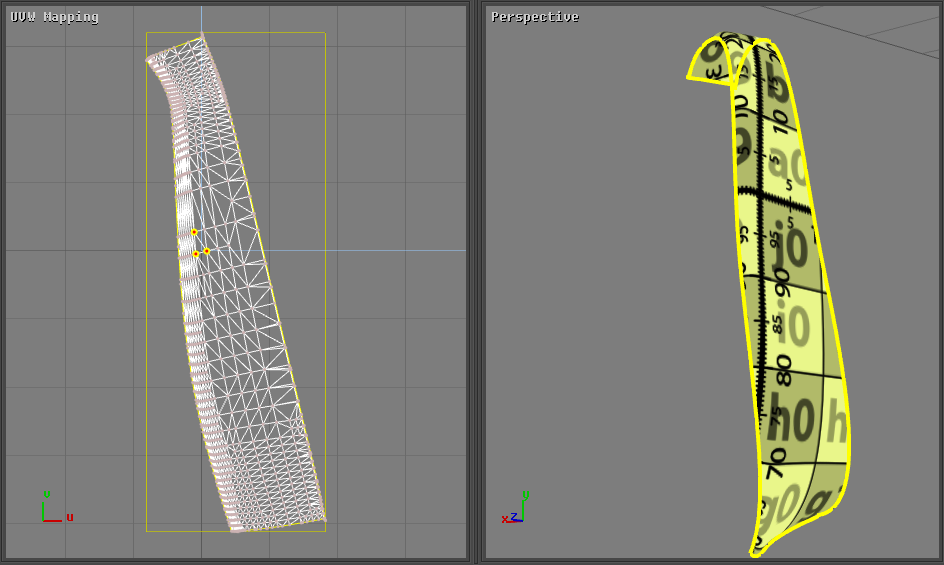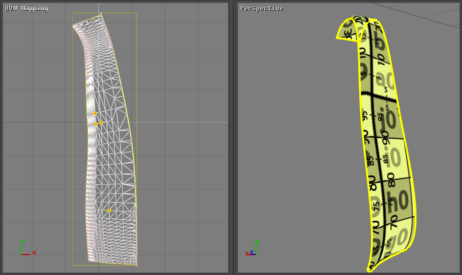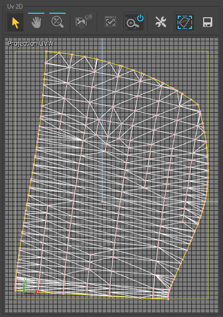 Les contraintes sont représentées par des points mis en surbrillance en jaune et rouge sur l’UV-mapping. Tout point représenté de cette façon est associé à une contrainte.