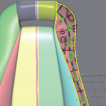 Dépliage avec Contraintes multiples permet d’assigner plusieurs marqueurs au dépliage pour qu’il suive, avec précision, les spécificités géométriques de la surface.