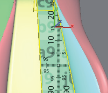 L’utilisateur peut convertir les marqueurs précédemment positionnés sur la surface dans la vue 3D en contraintes soit en effectuant un clic gauche dans la vue 2D, soit en utilisant l’option Convertir les marqueurs en contraintes accessible par clic droit dans la vue 2D.