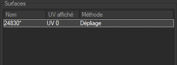 Chaque surface peut combiner jusqu'à 32 dépliages distincts. Au bas de la boîte, le canal UV affichépermet de choisir le jeu d'UV ciblé par le dépliage.