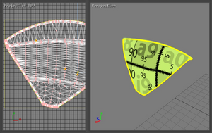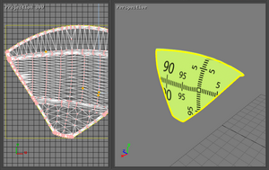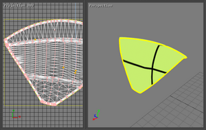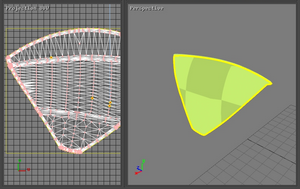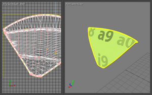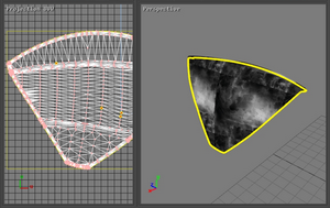Figure 43 : UV-mapping de la surface après application d’une contrainte additionnelle et vue 3D correspondante.