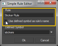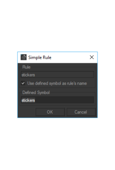1. In the Simple Rules editor, you can rename the symbol that will be automatically added to the Configuration Browser. The name of the layer is proposed by default. You can also rename the rule itself by unticking the checkbox Use defined symbol as rule’s name. Even if you rename the rule or the symbol, the name of the layer itself will remain unchanged.