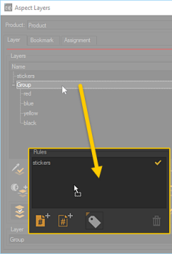 Aspect and environment layers are stored at the product level. This means that using a given aspect or environment layer as a target only affects the product with which it is associated. To apply the rule to several products, add the appropriate target layers for each additional product following the procedure below.