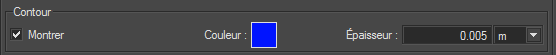 Le contour de découpe peut être visuellement représenté en activant l’option Montrer du cadre Contour. Vous pouvez choisir une couleur de représentation de la coupe en cliquant sur le carré coloré pour ouvrir le sélecteur de couleur. Vous pouvez également modifier l’épaisseur du trait en entrant directement un paramètre numérique, ou bien en utilisant les flèches haut et bas du clavier.