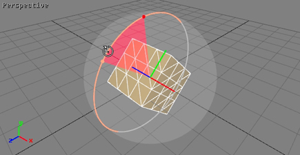 The rotation gizmo allows the orientation of surfaces to be modified by clicking and dragging the selection. This operational mode functions similarly to the translation gizmo: you can modify the selection with the same mouse and keyboard combinations.