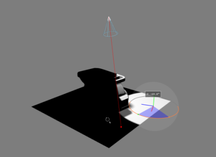 Figure 111 : Déplacement du point cible de la lumière spot avec le gizmo de rotation.