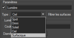 Figure 113 : Sélection du type de lumière Surfacique.