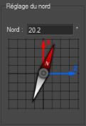 La boîte Réglage du nord sert à positionner le nord par rapport aux axes du repère de la base de données. Le nord se positionne de trois façons :