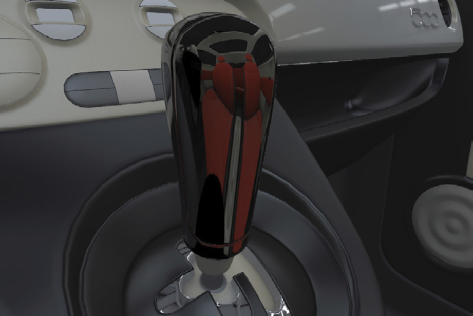 Pour visualiser l'environnement autour du pommeau de la boîte de vitesse dans le reflet du matériau chromé, il faut paramétrer l'environnement local.