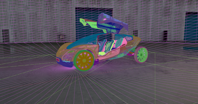 Figure 40 : Samples of layers from an exported PSD file: lightmap, wireframe and G-buffer views.
