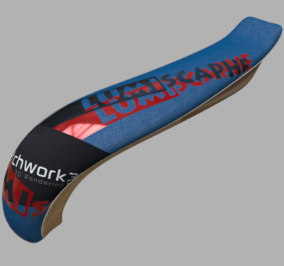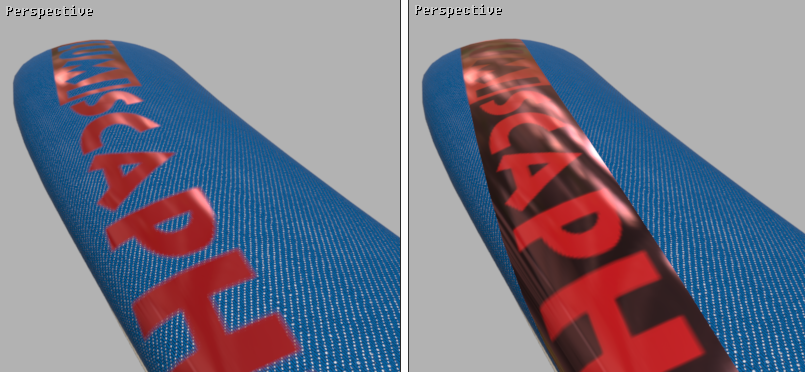 Any standard, multilayer, seam or environment material can be applied in label mode. In fact, the label material is a standard material for which the label mode is imposed by default. In this mode, the textures defining the material are no longer repeated on the surface. The labels are overlaid in successive coats according to their order of creation on the surface. This order can, however, be modified later in the Surface Properties Editor.