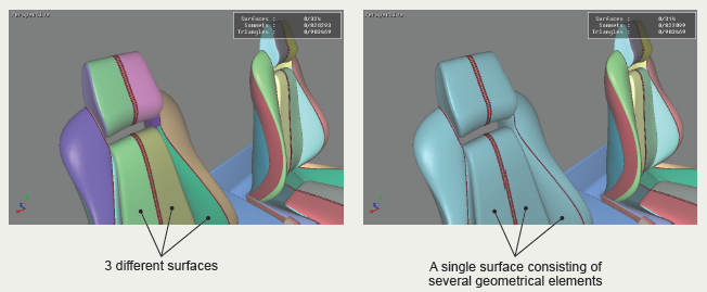 The same surface, whether it consists of one or more geometrical elements, can receive only one material. It is therefore important to split surface elements in your CAD tool before importing them into Patchwork 3D.